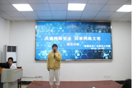 崔灿作为2019级通识教育学院的代表,以炫酷的高科技感作为灵感奠定海报基调,又从海报四大主角以及四大特点为在场观众做了进一步讲解。艺术学院以其较高的专业水平,向我们展示了学院内多个同学的海报成品并对其细节进行了进一步的阐述,其中一幅极具创新的眼睛与海报融为一体,另一张云层背景更巧妙融入海报之中。政法与公共管理专业团队成员,横跨三届学员,将手机嵌入海报中的奇思令在场人员耳目一新。资源环境学院不仅对海报进行了剖析,同时也着眼于大学生,为我们今后应该怎样做进行了拓展。同形同构的WiFi伞,使新闻传播学院的海报,得到了评委老师的好评。网络暴力这个角度,则由化学化工学院首先提出,并通过键盘这一图标呈现在大家面前。尽管材料科学与工程学院的背景图于其他组一致,但两组作品,充分表达了截然不同的思想主题。计算机与信息工程学院,作为主场,一张以飘逸着的五星红旗为底的中国地图,成为了它们的点睛之笔。
