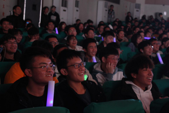 观众入场之际,舞台大屏幕上播放着学院学生组织制作的祝福视频,热情地表达学院学生对此次元旦晚会的期待和真诚地祝福。