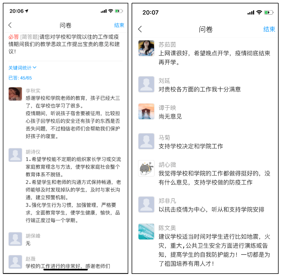 学院通过主题班会、日常打卡、线上家访等形式开展防疫健康教育、假期读书活动、家长互动交流,增强学生及学生家长对疫情防控的科学认识,引导学生不信谣、不传谣,做好健康安全防护,丰富学生的家庭学习生活,在上课之余提高理工科学生的综合素养,密切家校联系,为进一步筑牢家校协同战疫、协同育人工作,共同做好学生思想政治工作和疫情防控工作打下坚实基础。
