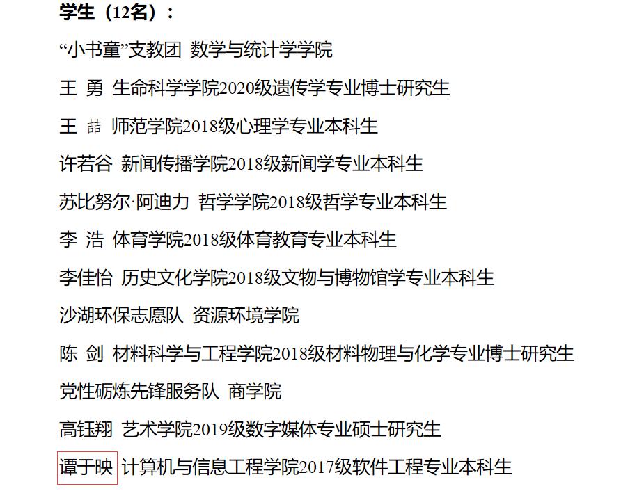 近日,ok138cn太阳集团第三届“青年五四奖章”候选人名单出炉。我院2016级软件工程专业陶锦丞和2017级软件工程专业谭于映成功入选“ok138cn太阳集团青年五四奖章”候选人。