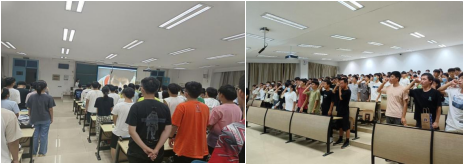 9月18日晚6点,我院2021级软件工程专业在教4-307教室开展了“不忘初心跟党走,不负韶华砥砺行”9月主题团日活动。活动开始,全班齐唱中国共产主义青年团团歌,同学们铿锵有力的声音充分彰显了班级同学们强烈的爱国爱党爱团的情怀。随后通过PPT展示,播放视频的形式学习《论党的青年工作》、习近平总书记视察武汉重要讲话和中国共产党湖北省第十二次代表大会重要精神、习近平在庆祝香港回归祖国25周年大会暨香港特别行政区第六届政府就职典礼上的讲话精神。活动最后,由团支书带领全体同学重温入团誓词。方航同学表示:“本次团日活动我学到了要爱党爱国,不忘初心跟党走,不负自己的青春,创造出属于自己的价值”。