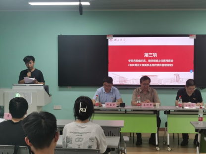 4月17日晚,计算机与信息工程学院党委第19期党的基本理论与知识培训班开班仪式于我院601报告厅、曼城联合学院203报告厅共同举行,计信学院党委书记、分党校校长秦明君,人工智能学院党委书记万路路出席本次仪式,计信学院党委副书记邓睿智主持开班仪式。