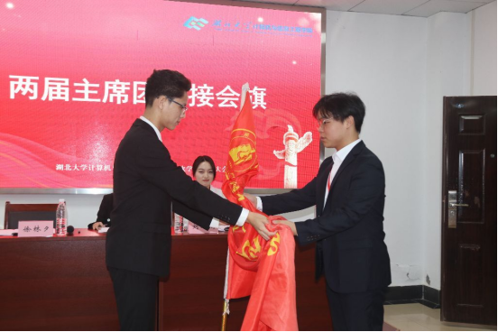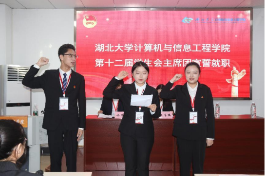 在第四次全体会议暨闭幕式上,新当选的ok138cn太阳集团计算机与信息工程学院第十二届学生会主席团成员郑重完成会旗交接,并庄严宣誓。
