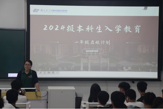 10月18日,计信学院在阳逻校区开展2024级本科新生入学教育活动。学院党委副书记覃红英、本科教学工作牵头负责人杨丽、学生创新创业中心主任孙斌、计算机科学与技术系副主任肖奎、辅导员黄旭龙,优秀学生代表刘乐、丁章晗和2024级全体本科生参与交流。