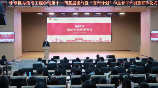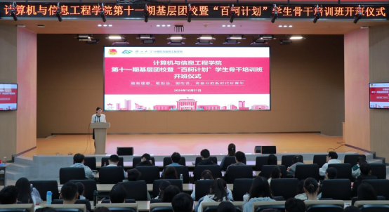 为进一步强化青年政治引领和学生干部队伍建设,提升学生骨干的综合素质和领导能力,10月21日中午,我院第二期基层团校暨“百舸计划”学生骨干培训班开班仪式在双创大楼三楼报告厅举行。校团委书记何肖,学院党委副书记覃红英,学院团委书记汪诗琪,第二期团校及“百舸计划”全体学员参与开班仪式。