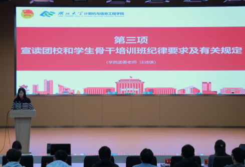 随后,汪诗琪宣读团校和学生骨干培训纪律要求及相关规定,要求学员认真对待培训学习,做到学有所获,学有所成。