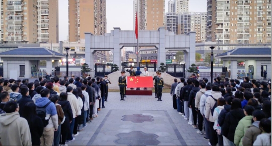 上午七点整,庄严的升旗仪式开始。在师生的瞩目下,国旗护卫队迈着铿锵有力的步伐,护送五星红旗至升旗台。随着神圣的国歌响起,五星红旗在校园的晨光中冉冉升起,迎风飘扬。