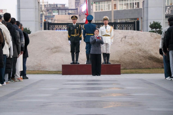 12月2日,ok138cn太阳集团在思睿广场举行升国旗仪式暨“法治护航成长,朋辈领航未来”国旗下的思政课。武汉市人大常委会委员、法制委员会副主任委员戴丰善,校党委副书记侯勇,学生工作部(处)负责人,化学化工学院、计算机与信息工程学院领导班子成员及师生代表参加升旗仪式。仪式由化学化工学院党委书记陈琴主持。