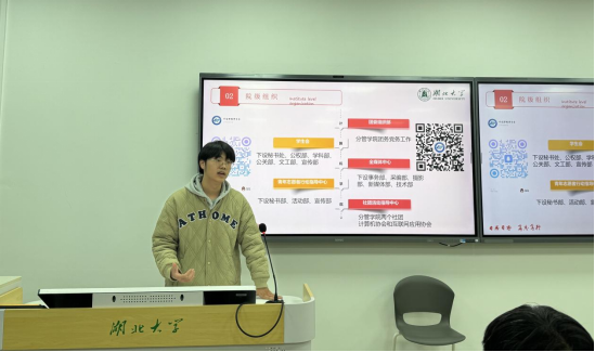 在“榜样面对面”环节,2021级本科生赵雨秋为学弟学妹分享了学生干部工作经验,他介绍了校、院级学生组织,建议学弟学妹们根据兴趣及自身发展需求加入团学组织。面对如何平衡学习与工作的问题,他表示,学习与工作就像主要矛盾和次要矛盾,同学们要集中力量解决学习这一主要矛盾,这是决定自身发展的关键因素,同时也不能忽视工作这一次要矛盾,合理分配时间与经历,让学习与工作相互贯通。