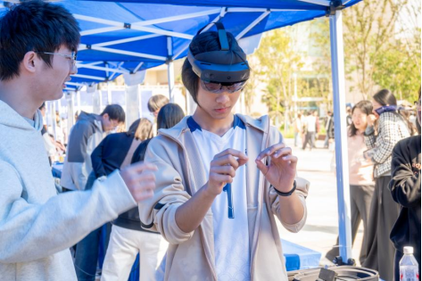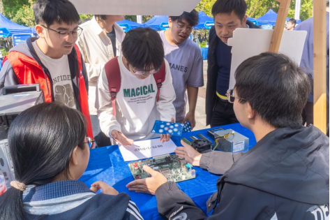 硬件小侦探展位前围满参与者,志愿者借实物科普硬件知识,观众不时追问“这个部件有什么功能?”“组装要注意什么?”。众人纷纷上前报名,动手完成主机重组。“身后是课堂的知识,面前是充满可能的舞台。”2022级软件工程专业学生沈豹说。