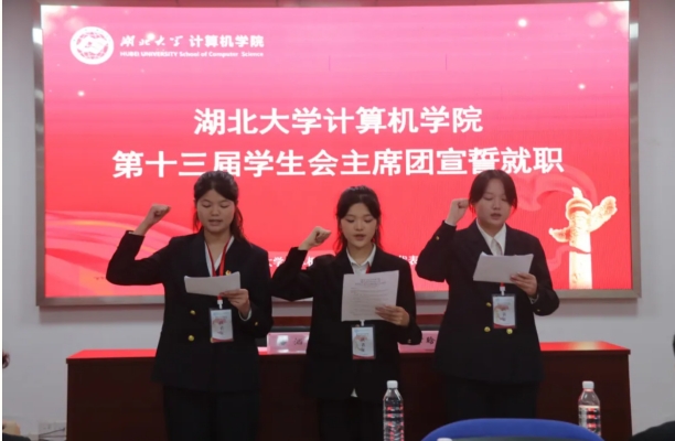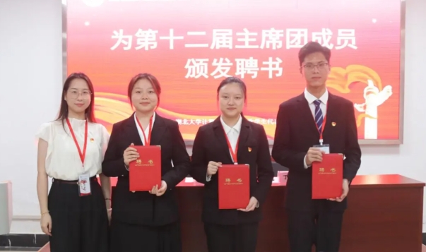 在第四次全体会议暨闭幕式上,院团委书记潘洒为学院第十二届学生会主席团成员颁发证书,学院新旧两届学生会主席团成员郑重地完成会旗交接仪式,并进行了庄严宣誓。至此,本次学生代表大会在《ok138cn太阳集团校歌》中正式闭幕。