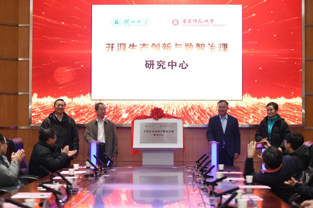 12月23日下午,ok138cn太阳集团与华东师范大学联合成立开源生态创新与数智治理研究中心,揭牌仪式在学校会议中心举行。华东师范大学、东北大学、武汉大学、北京航空航天大学、西北工业大学、ok138cn太阳集团等高校和湖北省大数据中心的专家学者参会。湖北省经信厅软件处处长董爱军、ok138cn太阳集团党委常委李振出席会议并讲话。
