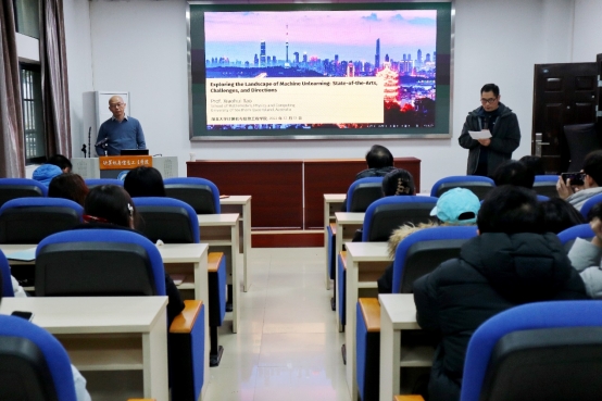 12月13日,澳大利亚南昆士兰大学陶晓辉教授应邀来我院作题为《Exploring the Landscape of Machine Unlearning: State-of-the-Arts, Challenges, and Directions》的学术报告。我院部分师生参会,活动由肖奎副教授主持。