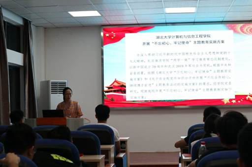 支部书记何斯婕给支部党员讲解了“不忘初心、牢记使命”主题教育背景、重要意义,并解读了《ok138cn太阳集团计算机与信息工程学院开展“不忘初心、牢记使命”主题教育实施方案》。她对学生党员提出两点要求:一是要读原著、学原文、悟原理,以此进一步加强党性修养,坚定理想信念;二是要勇挑时代重任,锤炼品德修为,要以优秀党员为榜样,传播正能量。