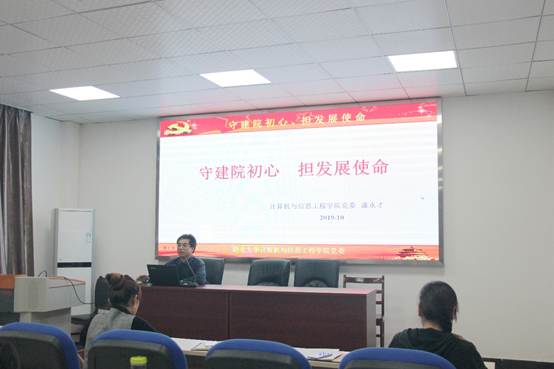 为扎实开展“不忘初心、牢记使命”主题教育,10月9日下午,院党委书记潘永才结合学习体会和调研成果,以《守建院初心、担发展使命》为题,为全院教师讲授专题党课。院领导班子成员和全院教职工参加专题党课学习。