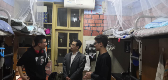 专题党课结束后,他深入二期学生公寓走访看望2018级电子信息工程班的同学,详细了解同学们的学生生活情况,并勉励同学们努力学习,不负青春韶华。