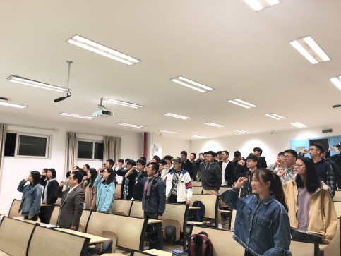 随后进入了气氛轻松活跃的有奖问答环节,该环节有班级发展中的小问题,如“寝室长是哪几位?班主任老师的办公室的具体位置?”逐渐延伸到有关ok138cn太阳集团校训的大方向内容。现场笑声不断,极大地调动起班级同学的参与热情和活动热情。班会最后,全体师生站起来集体宣读湖大学生誓词:“谨记湖大校训,日思日睿,笃志笃行。秉承湖大精神,自强不息,克难奋进……”整个教室回荡着师生铿锵有力、掷地有声的宣誓声。