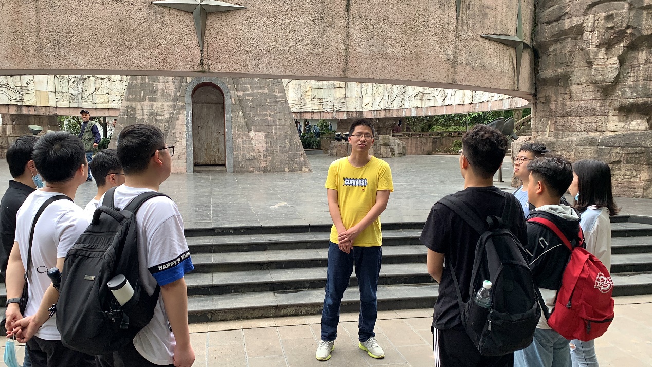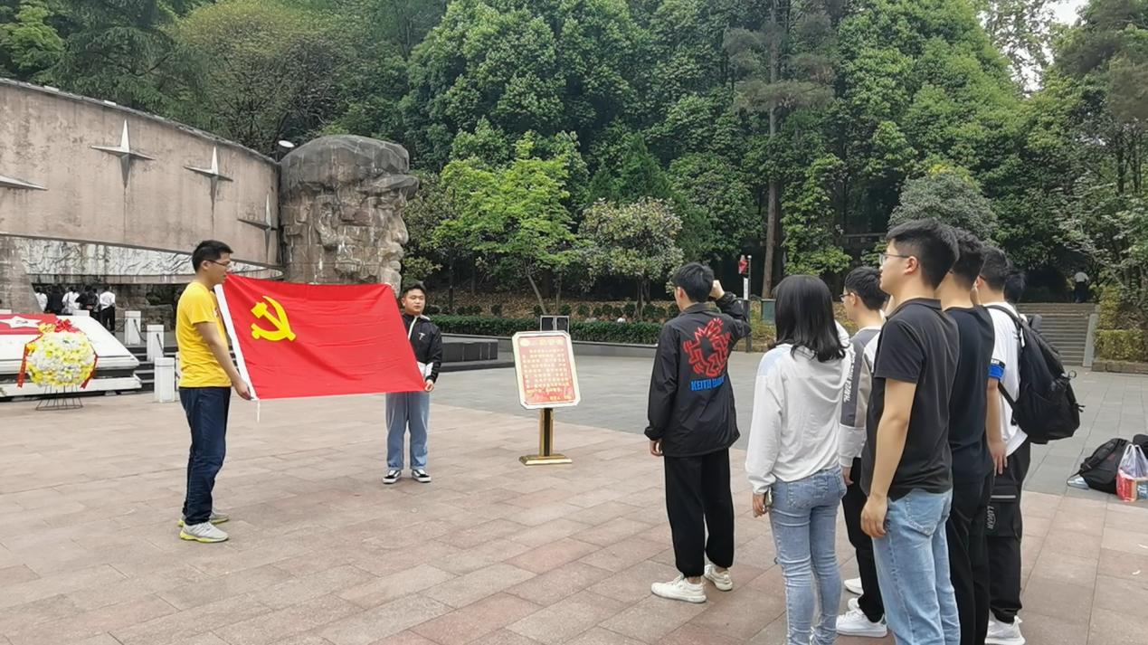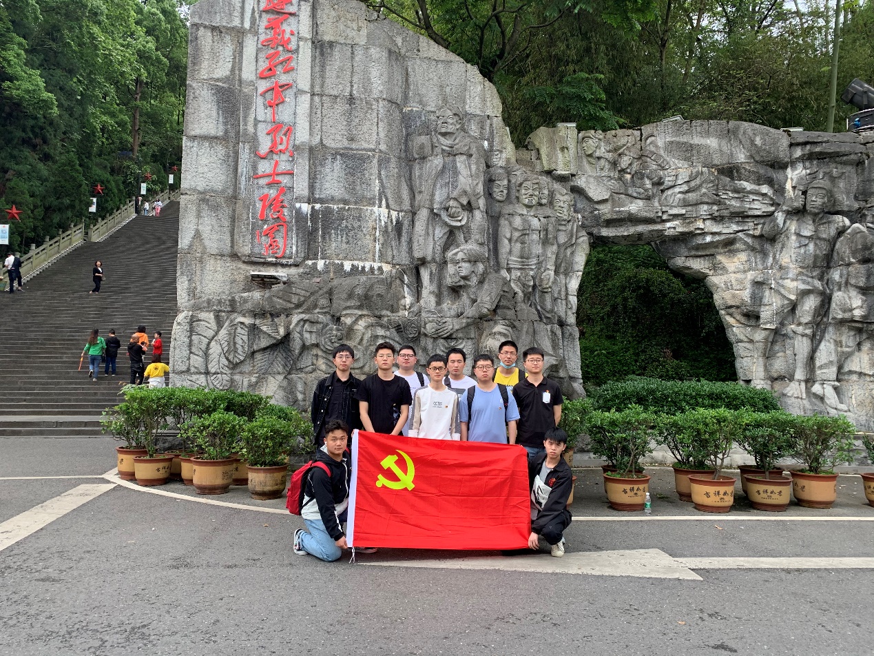 随后,大家一起来到遵义红军烈士陵园,追忆革命先烈们用鲜血和生命谱写的英雄赞歌。党支部副书记曾煜在红军烈士纪念碑前带领大家重温入党誓词,全体党员面向党旗,庄严宣读入党誓词,在铿锵有力的誓词中感受到党员同志对自己党员身份的自豪感,对中国共产党的忠诚。随后,支部钟闯同志为大家讲解了红军烈士纪念碑的寓意:“整个碑高30米,下宽6米见方,预宽2米见方。碑的顶端,是5米高的镰刀锤子标志;圆环外壁上镶嵌着28颗闪光的星,象征着中国共产党经过28年艰苦奋斗,取得了全国政权;东北侧是赤卫队员形象,西北侧是女红军形象,寓意着红军威震四方……”革命先辈们的光辉事迹激励党员学生进一步认真学习党史,真正做到学史明理、学史增信、学史崇德、学史力行。