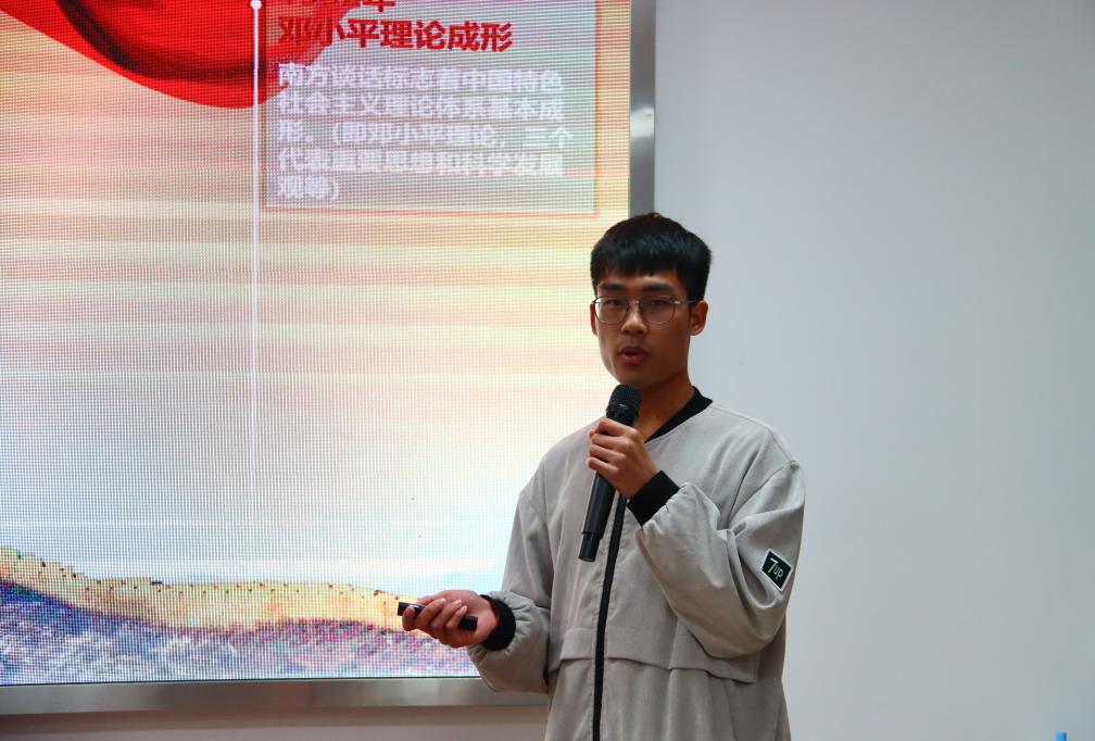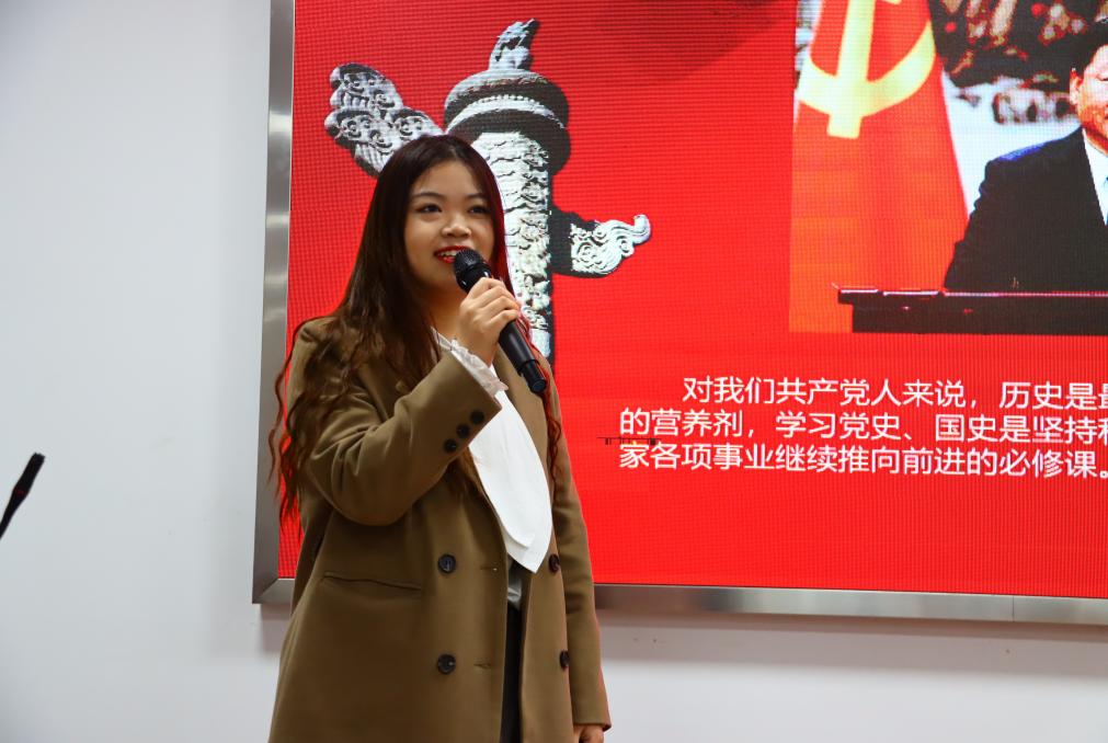 赛中,曹郁婕首先以“以史为灯,照亮前路”为主题从回望历史,铸就灯火,照亮前方三个方面介绍中国共产党的理念和精神,通过疫情期间身患渐冻症的武汉市金银潭医院院长张定宇、冲锋在一线的“95后”护士李慧、每天接听近300个电话的“钢铁书记”黄恒等先进共产党员事迹,讲述抗疫期间“活教材”。付紫洋以“学习党史,坚定理想”为题介绍我党红色基因、革命薪火代代相传的精神,他回顾了中国共产党百年辉煌的历史,详细讲述了中国共产党领导人民进行艰苦卓绝的斗争历程和取得的辉煌成就。他在演讲中动情讲述:“在缅怀先人的同时,我们更应该铭记身上背负的责任,紧紧团结在党的周围,用党的成功启迪智慧,树立正确的核心价值观,坚定的跟随党的步伐,为中华民族伟大复兴而奋斗。”