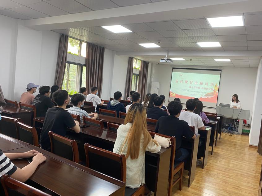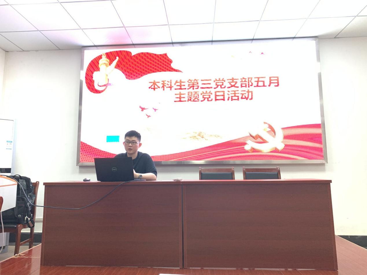 学院本科生第三党支部的谭前程同志以“讲述党史故事,追忆百年征途”为题,为支部党员讲述了中国共产党100年来三个时期的光辉历程。他表示,在新的历史条件下,党和国家希望当代青年进一步弘扬奋斗精神和优良传统,切实肩负起时代赋予的光荣使命。我们应当把个人的人生追求同祖国和民族的前途命运联系起来,在建设中国特色社会主义的伟大事业中贡献青春和智慧,在推动历史进步、实现中华民族伟大复兴的奋斗中实现自己的人生价值。