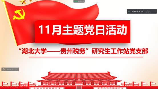 11月21日晚,“ok138cn太阳集团-贵州税务”研究生工作站党支部利用腾讯会议召开11月党日活动,活动由支部书记崔海波主持。会上支部党员集体重温入党誓词并学习《党章》,随后支部副书记曾煜带领大家学习习近平总书记在纪念辛亥革命110周年大会上的讲话精神,他表示作为青年党员,应该发扬孙中山先生等辛亥革命先驱的伟大精神,坚定信念,在共产党的领导下,为祖国富强、繁荣、昌盛贡献自己的力量。