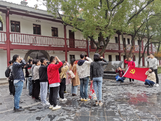 三个支部党员首先参观了中共五大会址暨陈潭秋烈士早期革命旧址,在会址门口党员们庄重地重温入党誓词,并由研究生第一党支部书记乔荃老师领学党章。