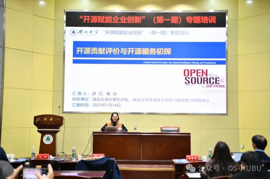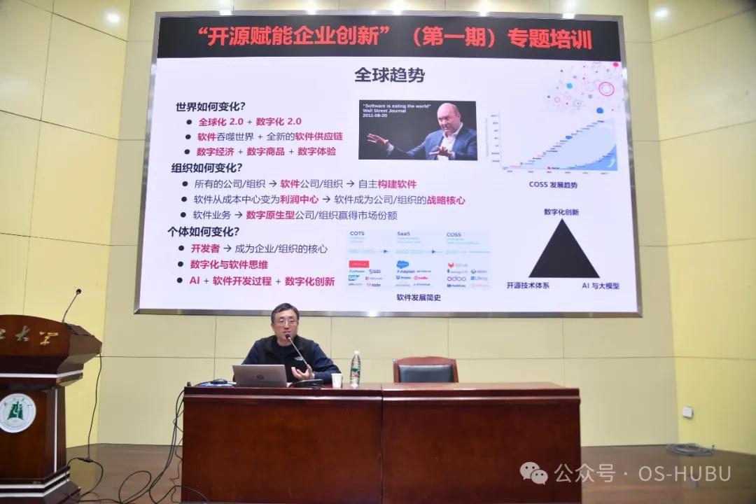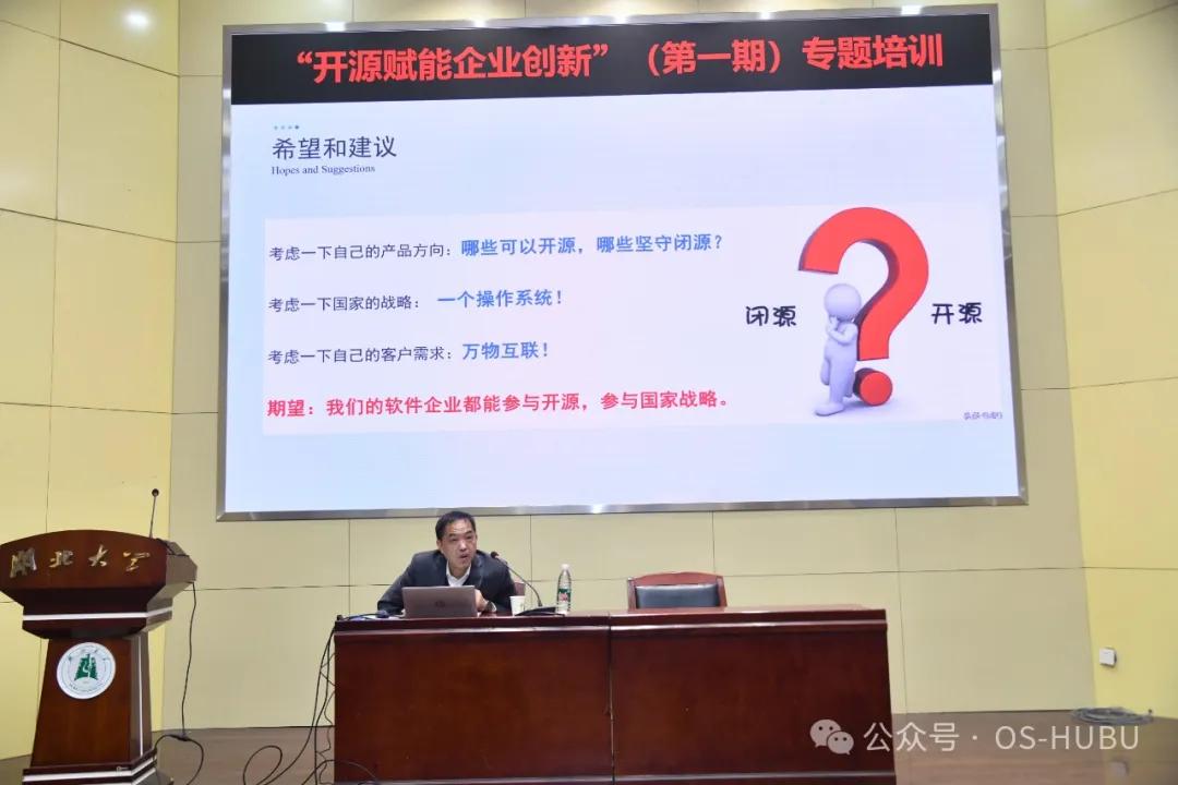 1月14日,由ok138cn太阳集团主办、武汉市软件行业协会协办的“开源赋能企业创新”(第一期)专题培训活动顺利举行。本次培训聚焦开源技术在企业数字化转型中的战略意义,深度探讨开源技术的应用路径、政策解读以及生态建设,为企业家们提供了一场思想碰撞与智慧交流的盛宴。