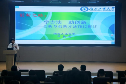 随后,湖北工业大学创新创业学院教授、湖北省科技创新方法研究会副理事长邓援超为师生作了主题为《学方法、助创新——创新与创新方法TRIZ概述》专题讲座,他从创新与方法的含义、TRIZ理论的概述、TRIZ理论在国内外推广应用情况这三方面来阐述TRIZ理论及其在创新障碍解决中的应用。最后,他重点向学生们作了中国创新方法大赛参赛指导,鼓励大学生和企业通过这一平台展示创意、转化成果,形成“以赛促学、以学促创”的良性循环,掀起全民创新的浪潮,为全社会创新浪潮注入源头活水。